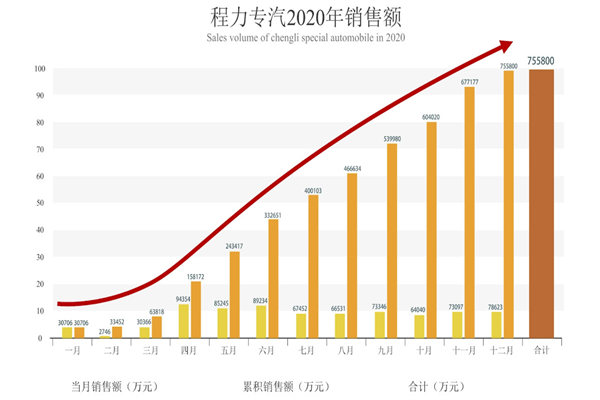 湖北程力公司在2020年初制定的專汽產(chǎn)值原本是完成70億目標(biāo),但隨著一場突如其來的疫情災(zāi)害影響,直接停產(chǎn)一個半月,耽誤產(chǎn)值13億元;對此,以程阿羅總經(jīng)理為首的高層團(tuán)隊(duì)精準(zhǔn)研判科學(xué)施策,面對疫情不畏困難,將沖刺目標(biāo)調(diào)高到75億;一手抓疫情防控一手抓復(fù)工復(fù)產(chǎn),積極應(yīng)對逆勢而上,大膽創(chuàng)新及時推出高端負(fù)壓救護(hù)車、醫(yī)療廢棄物轉(zhuǎn)運(yùn)車、疫情消毒車、應(yīng)急搶險車、核酸取樣檢測車等適銷對路的緊缺產(chǎn)品,馳援全國及國際疫情防控第一線,與病毒擴(kuò)散搶時間、奪戰(zhàn)場,把耽誤的時間補(bǔ)回來,把失去的市場占領(lǐng)回來。 2020年三月份以來,湖北程力專汽及應(yīng)急產(chǎn)品的生產(chǎn)銷售一直持續(xù)快速的攀升,平均增長速度超過了20%,遙遙領(lǐng)先于同行業(yè)的其他生產(chǎn)廠家,高于歷史同期增長水平,打了一個漂亮的翻身仗,截止12月25日上午10:38分,專汽產(chǎn)值提前6天順利完成75.58億,交出了一份令人滿意的答卷。