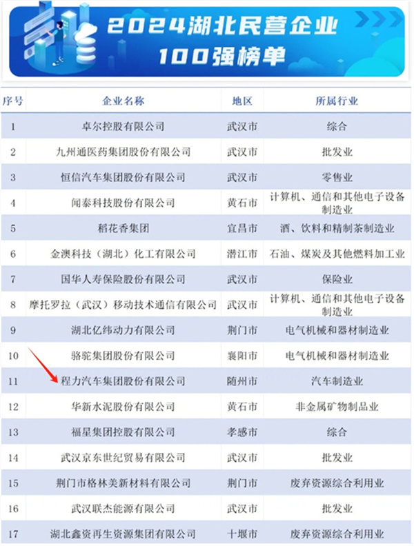 導(dǎo)讀:今天(10月31日)湖北省工商業(yè)聯(lián)合會(huì)發(fā)布2024湖北民營(yíng)企業(yè)百?gòu)?qiáng)系列榜單這是湖北連續(xù)14年發(fā)布民企百?gòu)?qiáng)榜單,湖北發(fā)布2024湖北民營(yíng)企業(yè)百?gòu)?qiáng)榜單,程力汽車集團(tuán)位列…