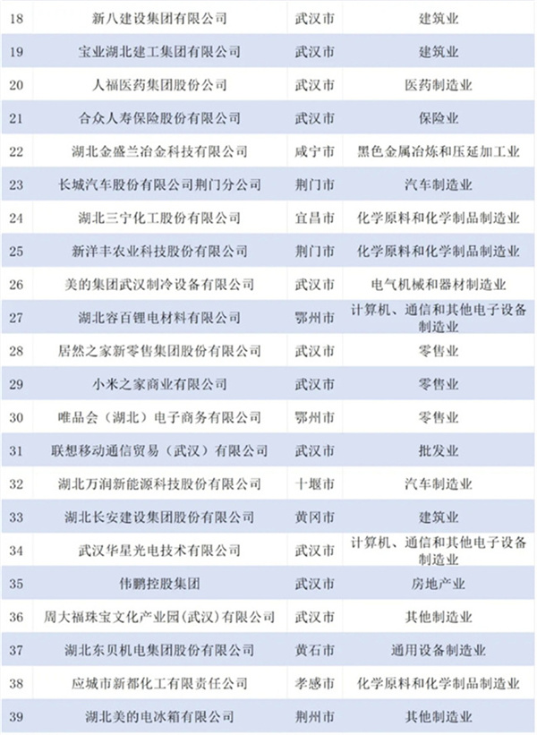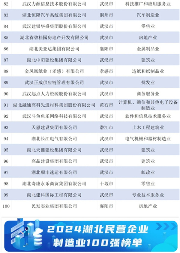 2024湖北民營(yíng)企業(yè)百?gòu)?qiáng)榜單發(fā)布