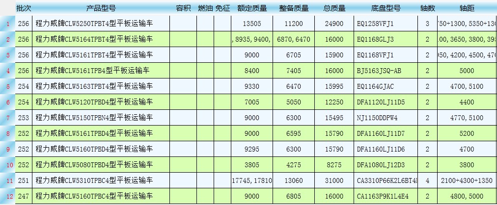 平板運輸車國四產品公告型號有哪些?整理下表可見: