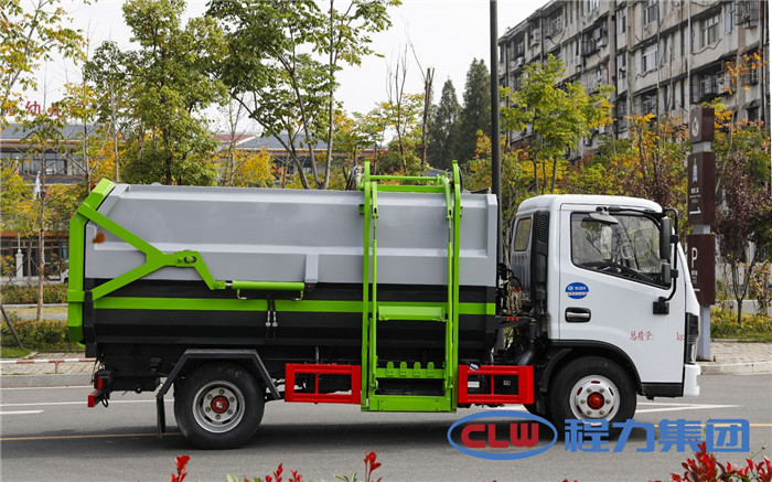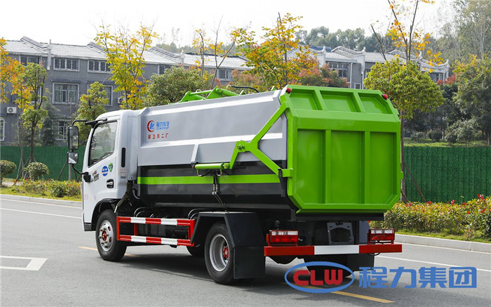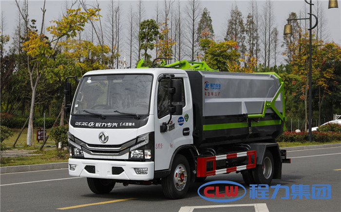 湖北程力國(guó)六東風(fēng)多利卡5方掛桶垃圾車(不帶壓縮)程力威牌CLW5071ZZZD6型自裝卸式垃圾車廠家配置: 底盤配置:東風(fēng)小多利卡國(guó)六5方掛桶垃圾車(不帶壓縮),采用東風(fēng)原裝底盤,D6系列新款駕駛室,采用東風(fēng)朝柴升級(jí)版CY4BK461國(guó)六排放發(fā)動(dòng)機(jī),95KW,130匹大馬力,萬(wàn)里揚(yáng)5擋變速箱,7.00鋼絲胎,國(guó)六車輛在國(guó)五基礎(chǔ)上增加了DPF顆粒捕捉器,多功能方向盤。 掛桶垃圾車是由密封式垃圾廂、液壓系統(tǒng)、操作系統(tǒng)組成,實(shí)現(xiàn)一車與多個(gè)垃圾桶聯(lián)合作業(yè),廂體上的液壓提升機(jī)裝置可將垃圾桶吊上、放下,上下升降。箱體采用Q235碳鋼板焊接而成,小多利卡、大多利卡為邊3底4mm厚度,3950軸距以上為邊4底5mm厚度,箱體底部油缸舉升自卸,側(cè)面提升機(jī)可選鏈條式、拉桿式,后門手動(dòng)開(kāi)啟加裝手電一體加一千,箱體加厚請(qǐng)電議。 湖北程力國(guó)六東風(fēng)多利卡5方掛桶垃圾車(不帶壓縮)程力威牌CLW5071ZZZD6型自裝卸式垃圾車多方位圖片;