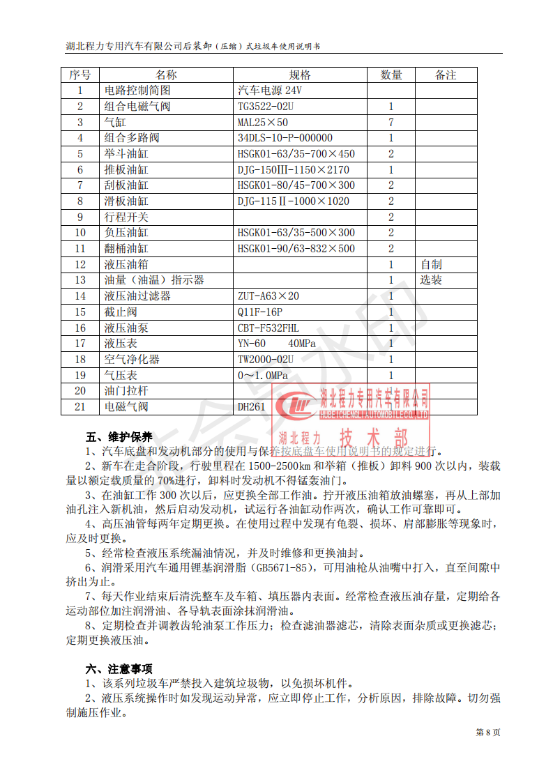 湖北程力壓縮垃圾車為全密封型,壓縮過程中的污水直接進入污水廂,徹底解決垃圾運輸過程中的二次污染,關鍵部件選用進口部件。