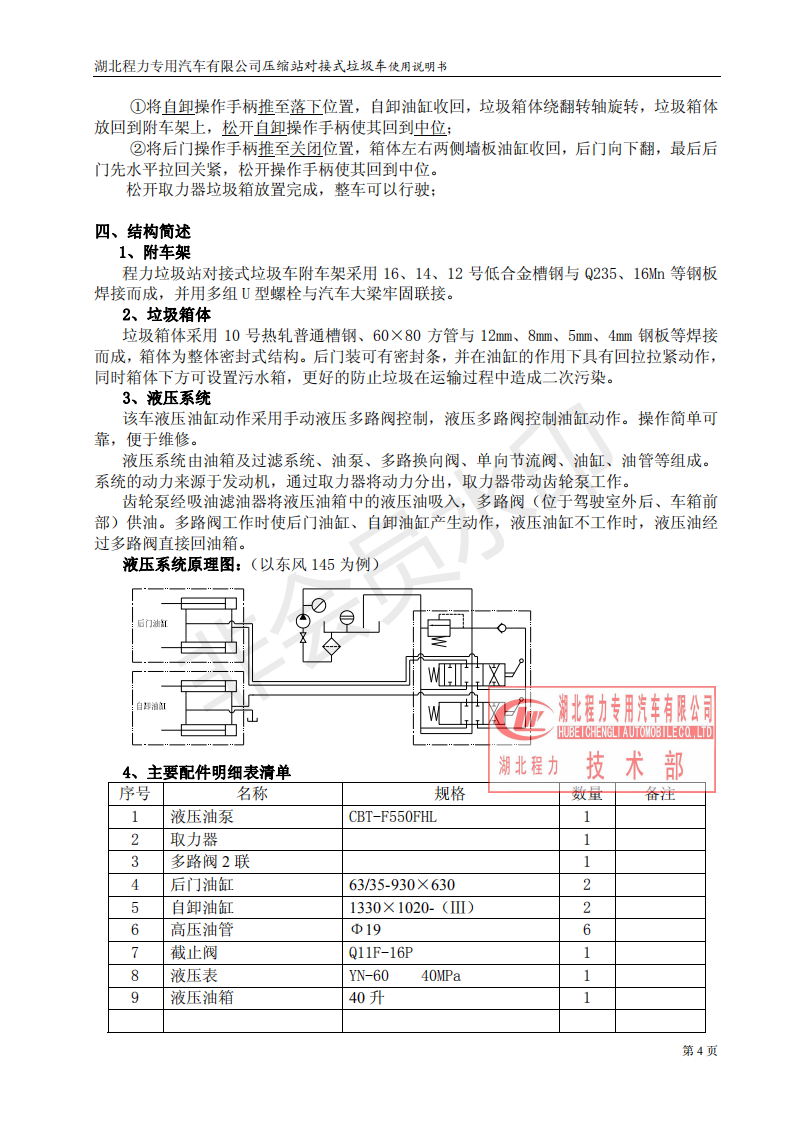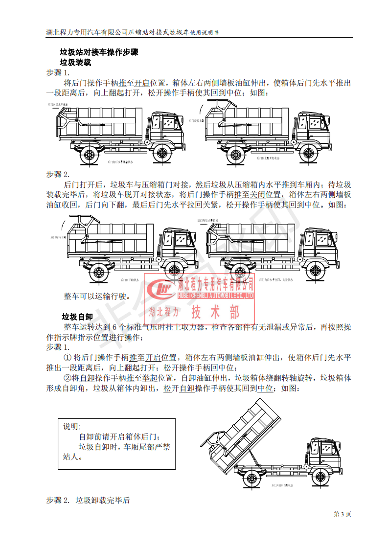 湖北程力垃圾壓縮站對(duì)接式垃圾車使用操作說(shuō)明書
