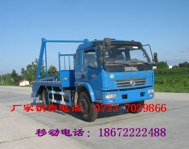 擺臂式垃圾車的擺臂裝置可以使集裝垃圾箱與汽車的主題分離實現理解的自裝卸。擺臂式垃圾車的擺臂的擺臂裝置也能使車廂傾翻,自卸垃圾。擺臂式垃圾車的結構特點:由二類汽車底盤、擺臂、液壓系統和車斗(車廂)等組成。它具有車斗的吊裝、吊卸和傾卸功能。