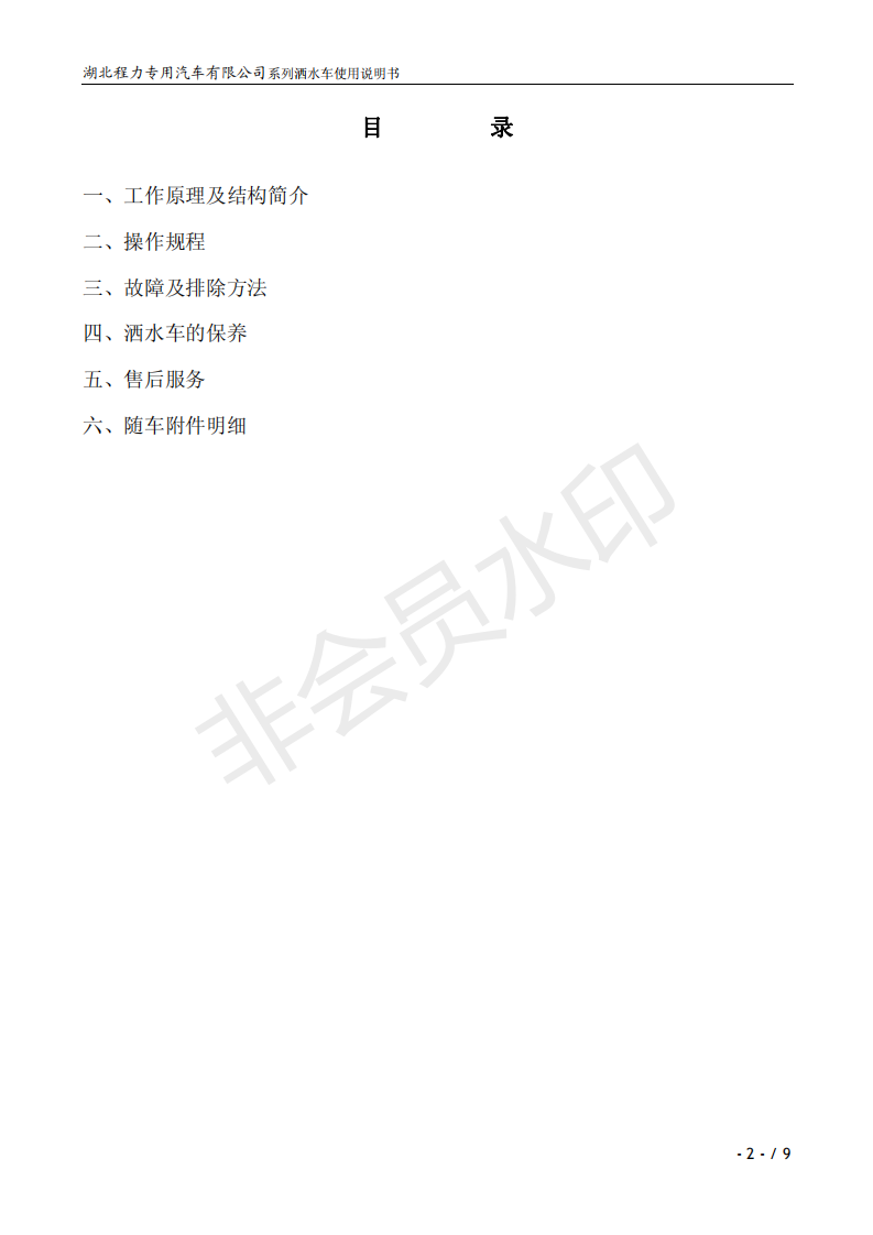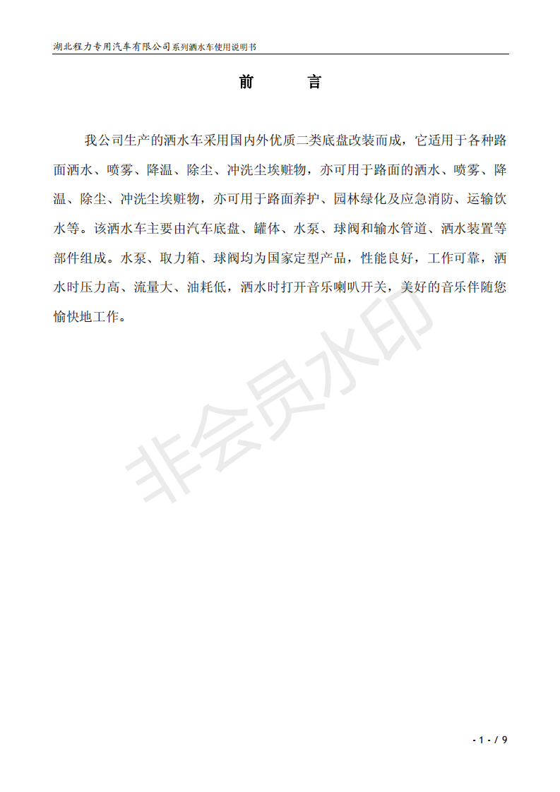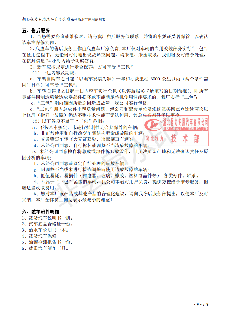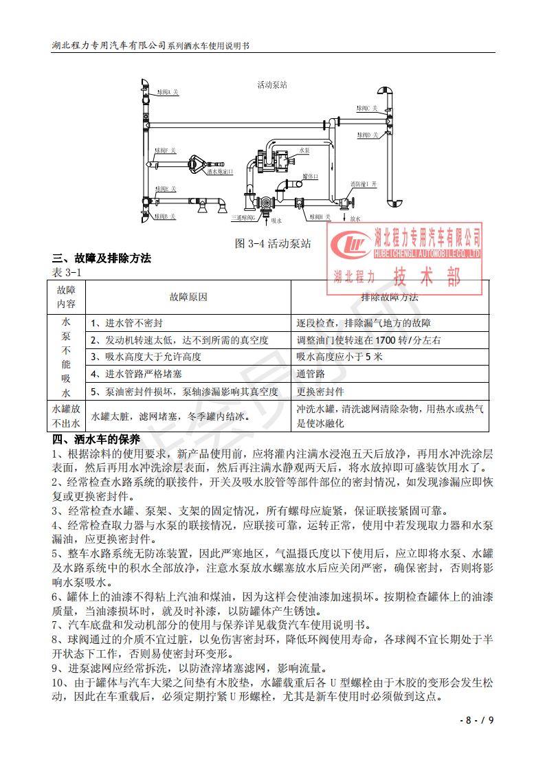 湖北程力灑水車操作說明書