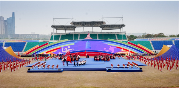秋高氣爽,濱湖體育場歡聲雷動,場內群眾以廣場舞、花鼓戲等表演笑迎八方賓朋。
