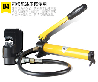 6、分離式壓接鉗的特性:可采用手動式、電動式和汽油發(fā)動機單動式液壓油泵浦;規(guī)格小、很輕,非常合適在高處和室內(nèi)空間窄小的地區(qū)工作 ;磨具購買:同EP-431、EP-510C;