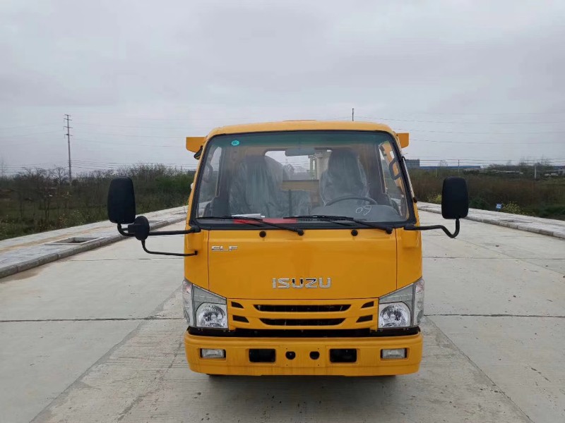 國六五十鈴藍牌一拖二清障車底盤配置:100P駕駛室,3360mm軸距,五十鈴120馬力發動機,五十鈴MSB五檔變速器,空調,方向助力,多功能液晶儀表盤,ABS,700R16輪胎,單排,前橋2噸,后橋4噸,駕駛室可翻,油剎或氣剎。