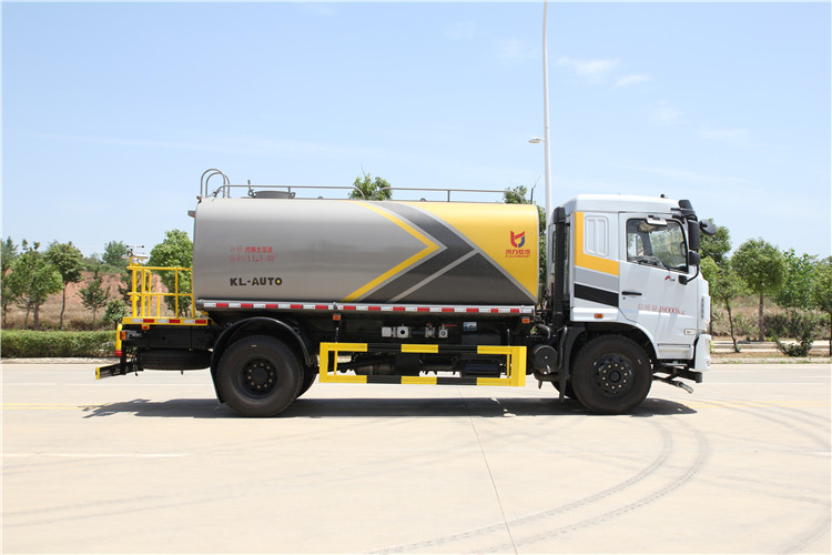 國(guó)六東風(fēng)華神14方綠化噴灑車(chē)(灑水車(chē))新款國(guó)六東風(fēng)華神灑水車(chē) 程力威牌14-15方綠化噴灑車(chē)! 東風(fēng)華神F5國(guó)六14-15方綠化噴灑車(chē)灑水車(chē)技術(shù)參數(shù) 1.總質(zhì)量:18T,底盤(pán)采用東風(fēng)華神F5駕駛室4500mm軸距國(guó)六排放二類(lèi)底盤(pán)。 2.發(fā)動(dòng)機(jī)額定功率:147KW(玉柴200馬力)或者康明斯230馬力 3.罐體有效儲(chǔ)水容積:12.04m3 4.輪胎規(guī)格:10.00R20 5.整車(chē)參考外形尺寸:7970*2550*3300 mm 6.罐體鋼板厚度:4mm 7.車(chē)輛前部配有四個(gè)鋁合金噴嘴,可作上、下、左、右方向調(diào)節(jié)。車(chē)輛后部配有兩個(gè)鋁合金噴頭。各噴嘴(頭)均可單獨(dú)進(jìn)行手柄開(kāi)關(guān)控制。 8.高壓水槍可以水平360°回轉(zhuǎn),可以作上下150°傾斜,具有水柱擴(kuò)散調(diào)節(jié)功能。 9.灑水寬度≥15 m 10.高壓水槍射程≥25--45 m 11.自吸深度≥7 m 12.霧炮射程≥25 m 13.灑水量滿足≥0.5 L/m2 14.沖洗速度選擇:二檔15-18 km/h,三檔23-25 km/h 15.發(fā)動(dòng)機(jī)在運(yùn)轉(zhuǎn)情況下踏下離合器能進(jìn)、出水泵取力器。