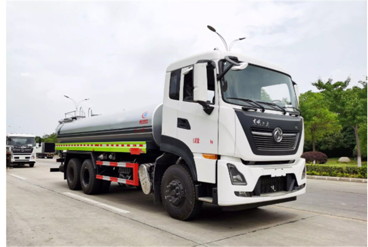 東風天龍KL/VL后雙橋灑水車是一款采用國六排放標準東風天龍后雙橋原裝底盤改裝的環衛車,該車配置豪華,駕乘舒適,該車罐體容積:18立方米,標配前沖、后灑、側噴、后平臺高炮,是園林綠化、小區物業、公路養護的常用車型。 國六東風天龍后雙橋18方高端灑水車(綠化噴灑車)底盤配置:采用東風天龍后雙橋原裝底盤,東風天龍豪華駕駛室,4400+1350mm軸距,搭載國六(國Ⅵ)東風康明斯290馬力柴油發動機,功率213kw;東風商用DDi350馬力柴油發動機,功率257kw,國六排放,陜齒法士特9檔變速箱,11.00R20鋼絲胎/295真空胎,前橋5T,后橋雙10T,方向助力,斷氣剎,排氣制動,原裝空調,行駛記錄儀,多媒體顯示屏,電動門窗,中控鎖,氣囊座椅,ABS。 國六東風天龍后雙橋18方高端灑水車(綠化噴灑車)專用配置:罐體容積:18立方米,罐體鋼板為4mm碳鋼Q235材質專用容積板一次成型,罐內隔板具有防波作用,以減輕汽車行駛時罐體液體沖擊;配大功率專用灑水泵,泵可自吸自排;整車前沖、后灑、側噴、后平臺帶綠化灑水炮,灑水炮可全方位旋轉,可連續調成直沖狀、大雨、小雨、毛毛雨;前封頭帶水位計,后平臺主管路帶1寸澆花接口,后爬梯,帶1個消防接頭,帶1個自流閥,1個過濾裝置。