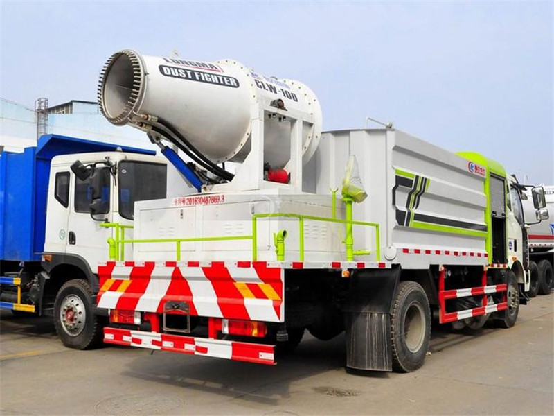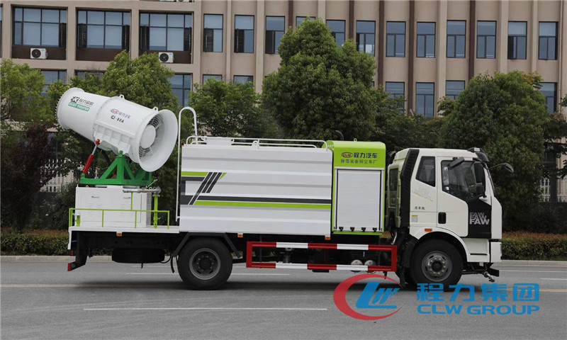 湖北程力國六解放J6單橋多功能抑塵車霧炮配置:霧炮射程從60米到120米,可隨意選擇,射程不同,價格不同,霧炮自帶柴油發電機組,標配100米以內遙控裝置,可360度遙控旋轉,達到全方位大面積精準噴霧,經環保部門測試,霧炮車可以將空氣中的PM10濃度降低20%左右,該車負載的大型霧炮噴霧流量平均每分鐘50-150升水,同樣10噸水,在霧霾天氣可以進行液霧降塵,將漂浮在空氣中的污染顆粒物迅速逼降地面,達到凈化空氣的效果。